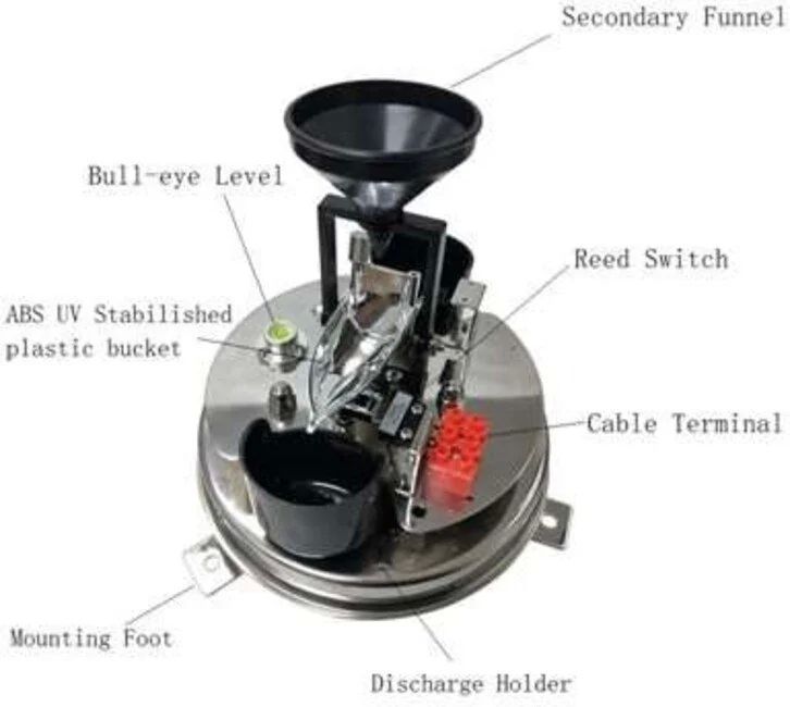 Ordinary/Non-Recording Rain Gauge manufactured as per IS 5225:1992. The collector and base is made of FRP material. The rim of collector is made of Gunmetal. Rain fall is collected in the polythene bottle which has capacity of 4 litres. Rain measuring cylinder of 20 mm capacity is supplied for rain gauges having collector area 200 cm2.